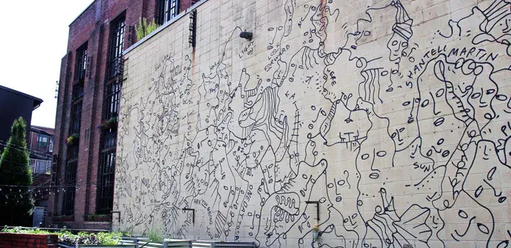 Retrace your steps back down Monroe Street and take a left at 7th Avenue. Travel straight to Taylor Street, where you’ll see the black and white mural created by the artist Shantell Martin. Try to spot how the different phrases relate to the elements of the wall.