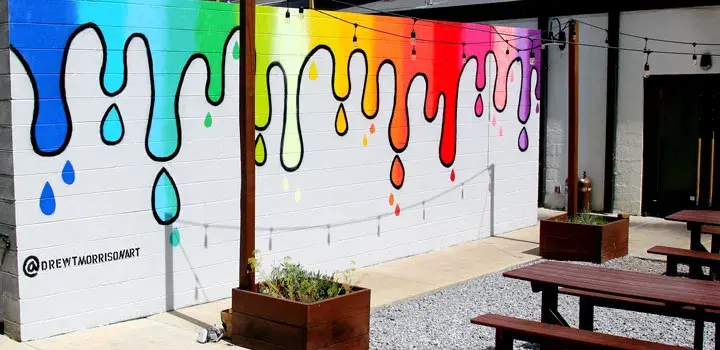Travel yet another block down Monroe Street to 3rd Avenue. On the side of Saint Stephen that faces 3rd, you’ll see a colorful paint dripping mural done by Drew T Morrison.