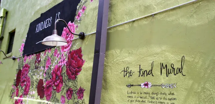 Time for our last two murals! Head west on Madison toward 4th Avenue. Just before you get there, you’ll see Harmony, a piece by musician Ty Christian, and The Kind Mural on the side of the Juice Bar. The Kind Way, founded by South Dakota natives Rebekah Rinehart and Sarah Nelson, plans to install their mural in every major city around the globe.